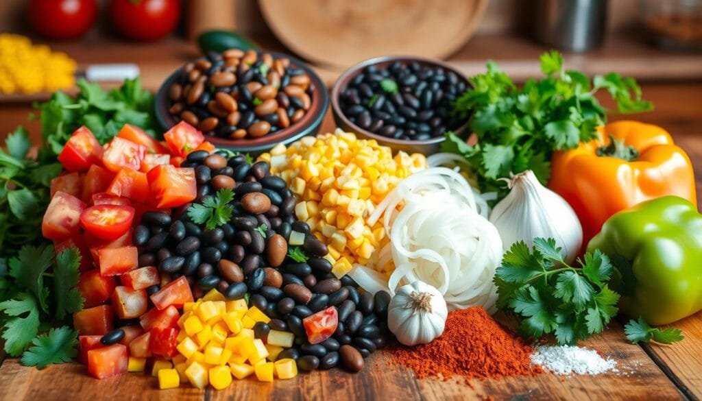 Making a tasty taco soup begins with picking the right ingredients. You need savory ground beef, beans, tomatoes, and spices. Each one is crucial for the perfect flavor mix. Let’s look at the key taco soup ingredients that make it so good.