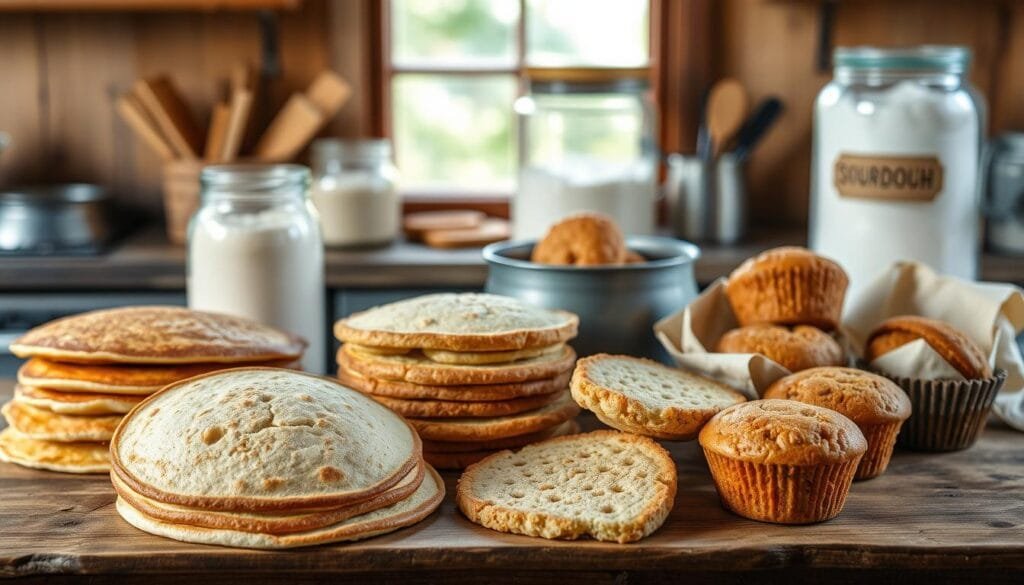 There are many beloved sourdough discard recipes. They let bakers use leftover starter in tasty ways. These recipes make meals and snacks tangy and complex.